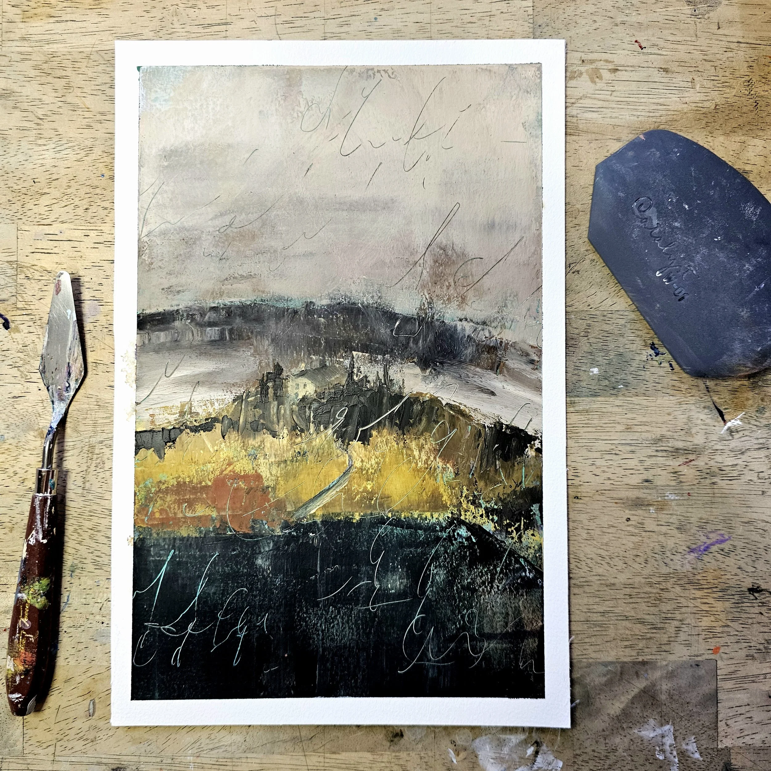 Switching gears, I spent some time at Art Gym experimenting with oil paints and cold wax medium. If you’ve never tried it, cold wax is incredible—it lets you layer, scrape, and play in ways that feel so different from watercolor. I found myself leaning into textures and embracing the unpredictable.